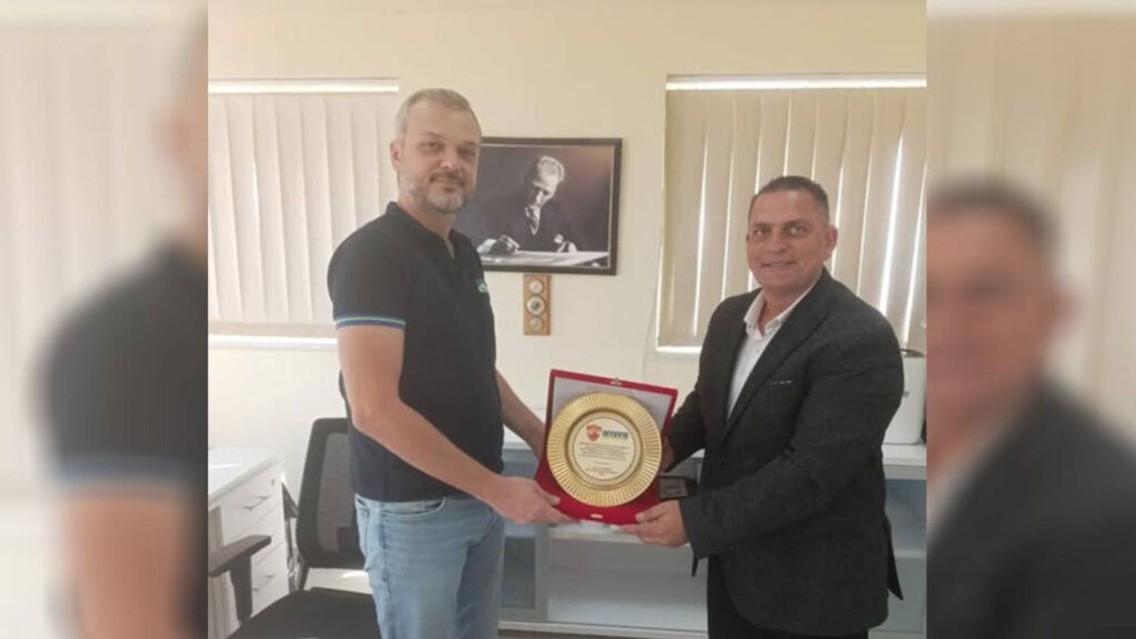 Ziyaret sırasında Karavezirler, AKSA Enerji’nin Kıbrıs Türk futboluna verdiği destek ve katkılardan ötürü Şentürk’e teşekkür ederek bir plaket takdim etti.