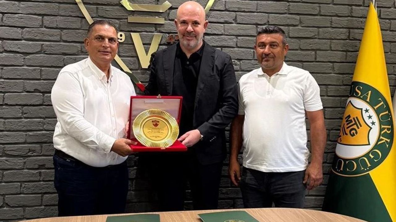 Kulüpler Birliği başkanı Aytaç Karavezirler Mağusa Türk Gücü başkanı Koral Bozkurt’u ziyaret ederek plaket takdiminde bulundu.