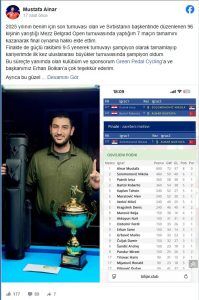 Alnar paylaşımında, bu süreçte kendisine destek olan kulübü ve sponsoru Green Pedal Cycling’e ve kulüp başkanı Erhan Bolkan’a teşekkür etti. Ayrıca turnuvanın düzenlenmesinde emeği geçen Nenad Ilić’e ve Sırbistan Federasyonuna misafirperverlikleri ve organizasyon için teşekkürlerini iletti.