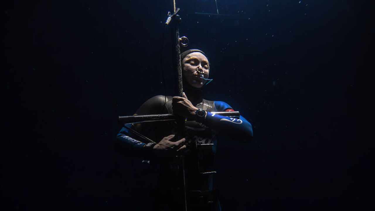 Serbest dalış dünya rekortmeni milli sporcu Şahika Ercümen, Gazze'ye destek amacıyla Antalya'nın Kaş ilçesinde gerçekleştirdiği 107 metrelik dalışla, değişken ağırlık paletsiz kategorisinde kendisine ait olan dünya rekorunu yeniledi