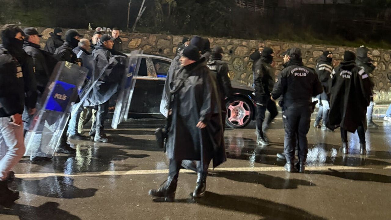 Taraftarlar dağılana kadar bekletilen araç, güvenlik önlemlerinin alınmasının ardından yola devam etti.