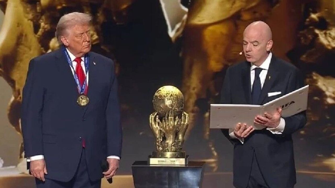 FIFA Başkanı Gianni Infantino, kura çekimi öncesinde sahnede Trump'a ödülünü takdim ederken, ABD Başkanı'nın yaklaşık 1 yıllık görev süresinde dünyanın birçok noktasındaki bazı savaşların sona erdirilmesinde ana rol oynadığını söyledi.