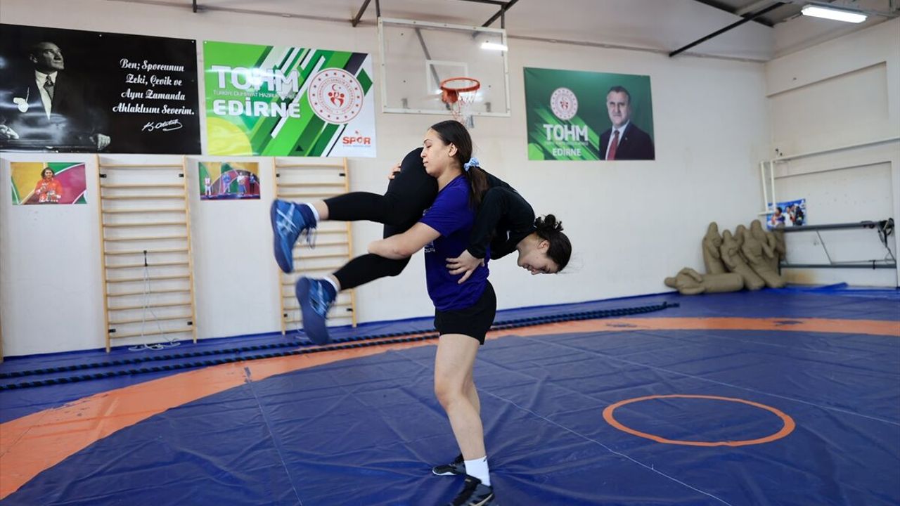 Kuzey Kıbrıs Türk Cumhuriyeti’nden (KKTC) kadın güreşçiler, tecrübelerinden yararlanmak amacıyla Edirne’deki antrenör ve güreşçilerle çalışma yaptı.