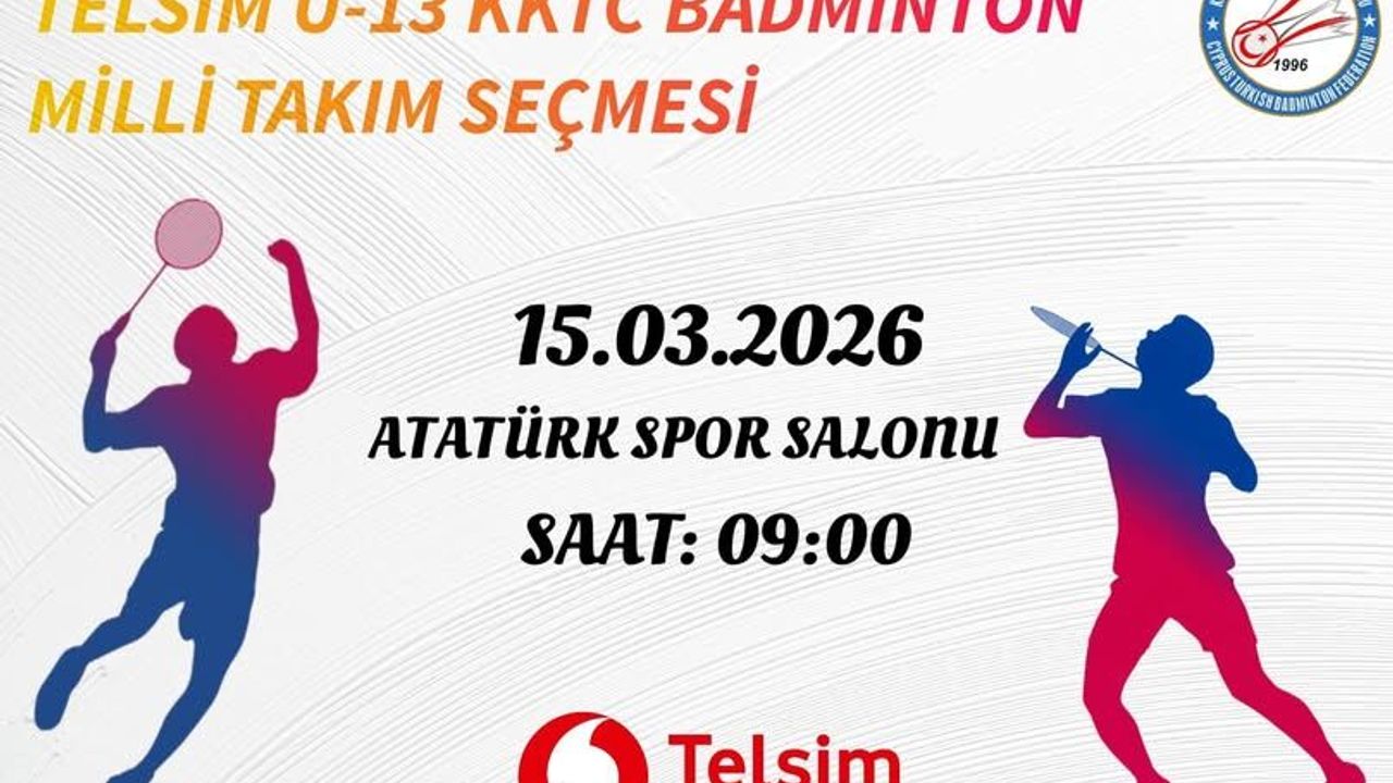 KKTC Badminton Federasyonu, 15 Mart 2026 Pazar günü Telsim sponsorluğunda U13 Milli Takım Seçmesi düzenleyecek.